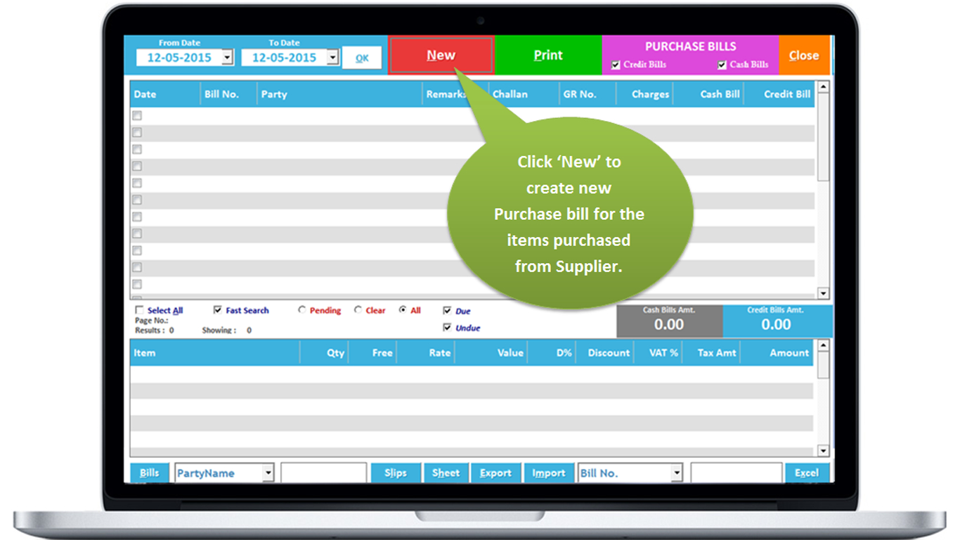 3. Click New to create new Sale Bill.