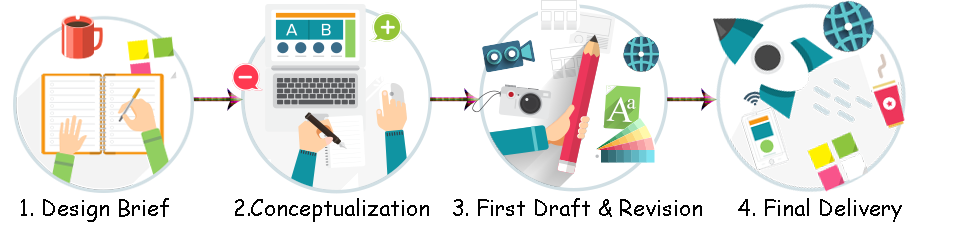 Client chooses one of the logo design packages available. Then the client explains the details and concept of a project. Client will be asked about his industry, his ideas, theme and key colors to be used.